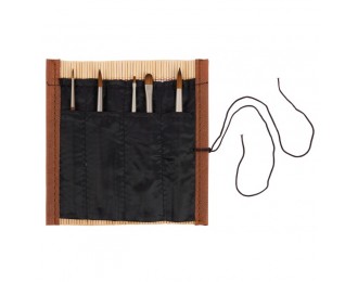 Ce coffret raffiné contient 5 mini pinceaux de précision, soigneusement sélectionnés pour répondre aux exigences des travaux minutieux et des finitions délicates. La natte en bambou se déroule facilement pour un accès immédiat aux pinceaux, puis se referme pour assurer leur protection lors de vos déplacements.