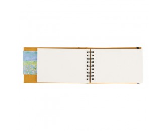Doté d’une reliure spiralée pour une ouverture pratique à plat, ce carnet est habillé d’une couverture toilée jaune safran, à la fois résistante et agréable en main. Il est illustré de l’œuvre Champ d’iris jaunes à Giverny (1887), conservée au musée Marmottan Monet, référence incontournable de l’univers impressionniste.