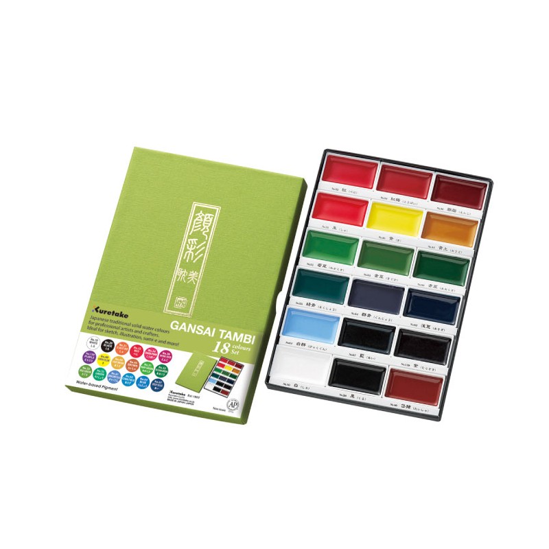 Fabrication : les couleurs de la gamme Gansai Tambi ont été fabriquées selon les procédés traditionnels de l’aquarelle japonaise. Les matériaux employés sont non toxiques, et respectueux de l’environnement.