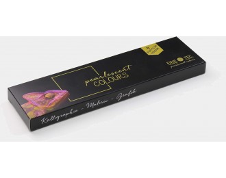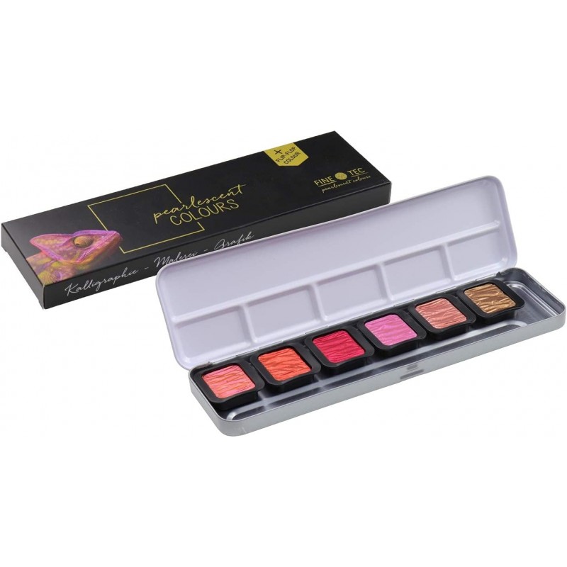 Coffret de 6 couleurs nacrées aquarellables à haute pigmentation, excellente luminosité et opacité : or d'automne, tangelo, rubis, fuchsia, or rose et noisette.