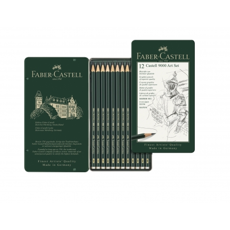 FABER CASTELL - Art Set Boite Metal 12 Crayons Graphites 9000