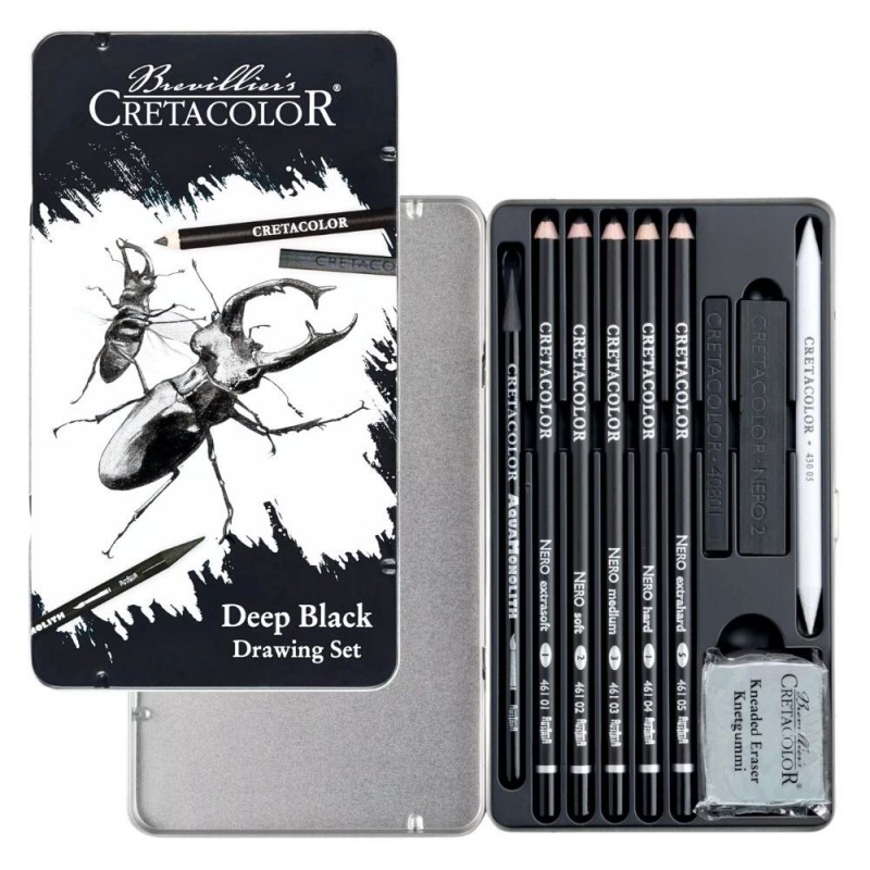 Le coffret de dessin et d’esquisse 10 pièces offre une large gamme de noirs profonds. En complément d’un Aqua Monolith aquarellable, ce set est principalement composé de produits Nero audacieux et résistants à l’eau, parfaits pour des traits intenses, des ombrages marqués et des croquis expressifs.